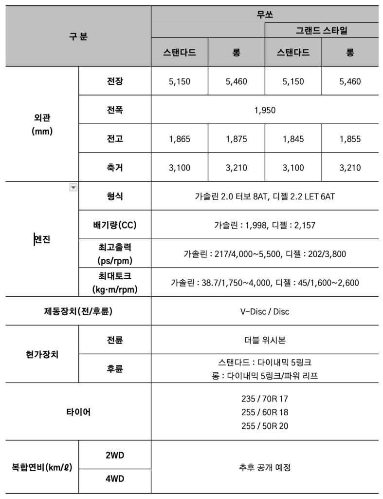 무쏘는 전면 디자인, 파워트레인, 데크, 서스펜션을 다중 라인업으로 구성해 사용 목적에 따라 선택할 수 있도록 했다.