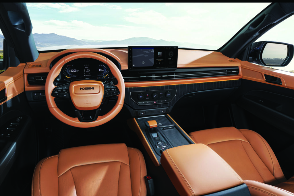 실내에는 12.3인치 디지털 클러스터와 KGM 링크 내비게이션을 적용했다. 전자식 변속 레버와 전자식 파킹 브레이크를 사용했다. 듀얼존 풀오토 에어컨은 LCD 다이얼 방식이다. 스웨이드 퀼팅 IP 패널, 슬라이딩 기능이 포함된 신규 선바이저, 엠비언트 라이트를 적용했다.