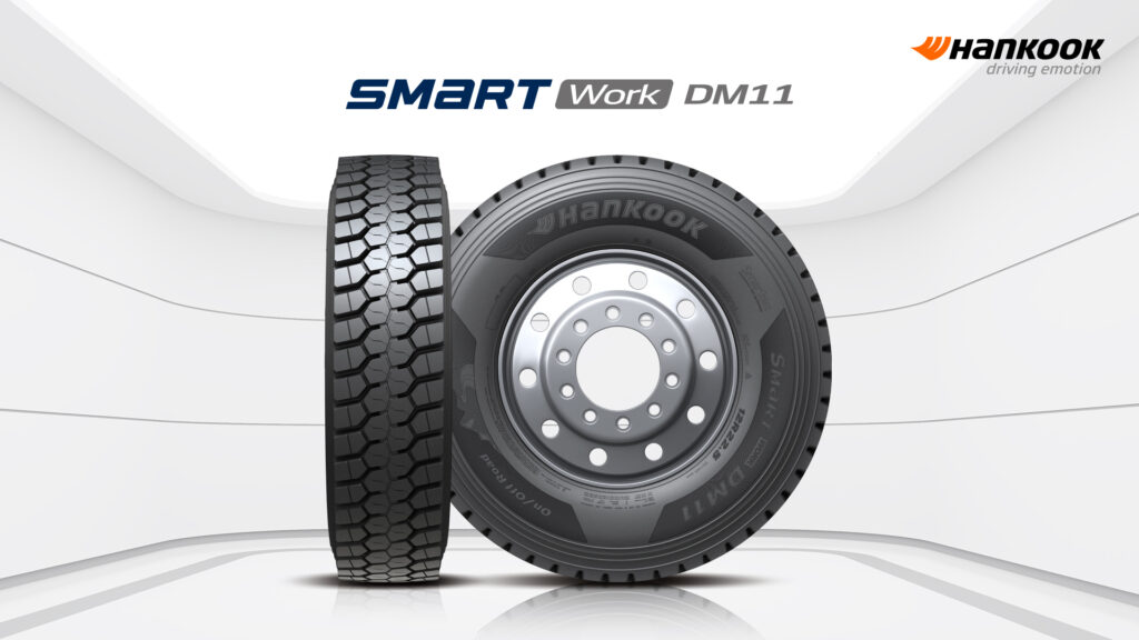 ‘스마트워크 DM11’은 온∙오프로드 주행 조건에 최적화된 프리미엄 후륜용 타이어로, 한국타이어의 최첨단 트럭∙버스용 타이어 기술 ‘스마텍(Smartec, Smart+Technology)’ 기술이 반영된 제품이다. ‘스마텍’은 안전성, 마일리지, 칩앤컷(Chip and Cut) 방지, 타이어 재생 성능, 제동력 등 다섯 가지 요소를 기반으로 타이어 성능 전반을 향상시켰다.